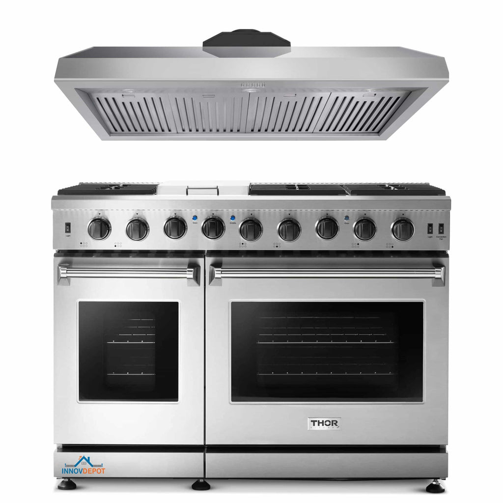 Thor Kitchen 2-Piece Appliance Package - 48-Inch Gas Range & Under Cabinet 11-Inch Tall Hood in Stainless Steel