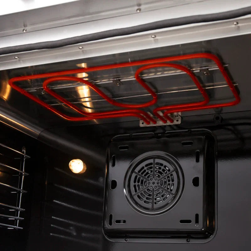 The Forno Galiano 36″ French Door Alta Qualita Pro-Style Freestanding Electric Range brings professional styling and quality into your home kitchen with its durable stainless-steel design. Stovetop has 5 radiant elements with a total output of 7,700 watts and features a cavity top plate.
