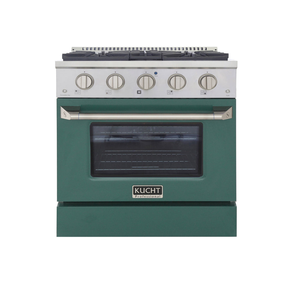 Kucht 30-Inch Pro-Style Dual Fuel Range in Stainless Steel with Green Oven Door (KDF302-G)
