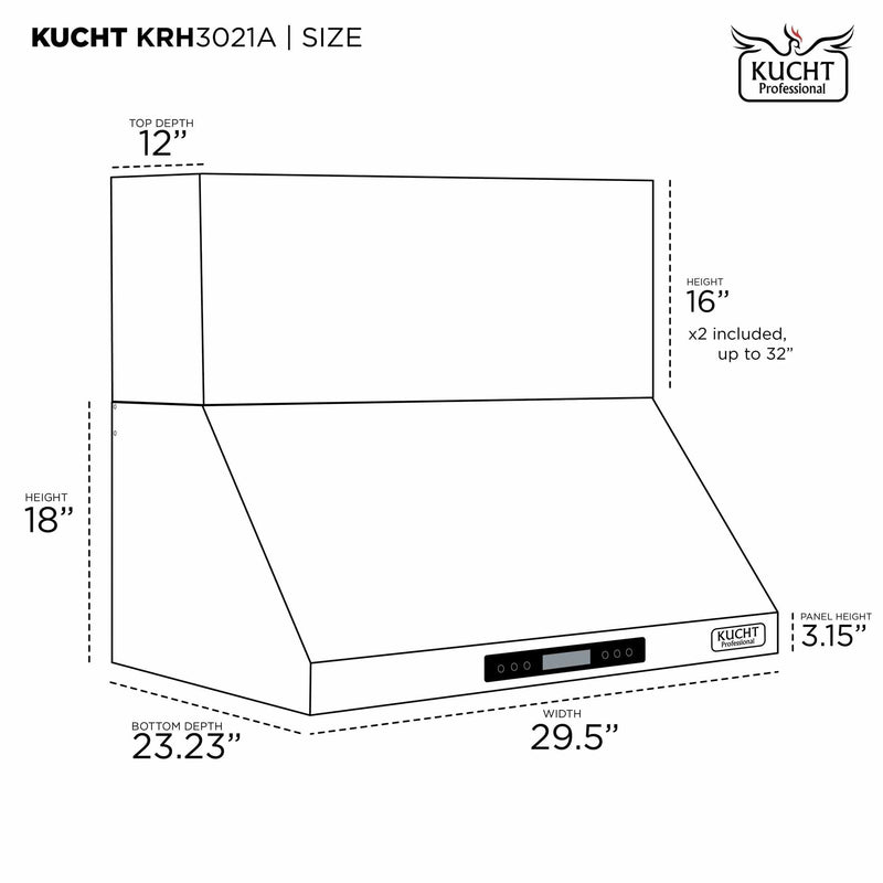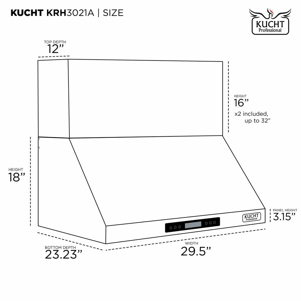 Kucht 30-Inch Wall Mounted Range Hood 900 CFM in Stainless Steel (KRH3021A)