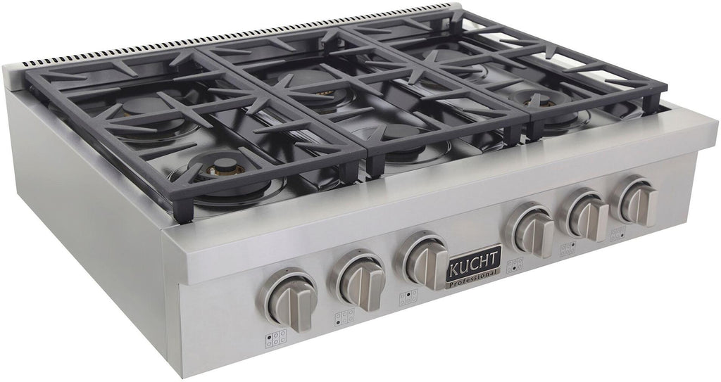 Kucht 36-Inch 6 Burner Gas Rangetop in Stainless Steel with Silver Accents (KFX369T-S)