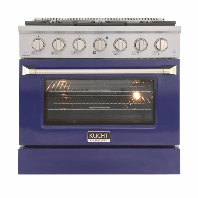 Kucht 36-Inch Pro-Style Dual Fuel Range in Stainless Steel with Blue Oven Door (KDF362-B)