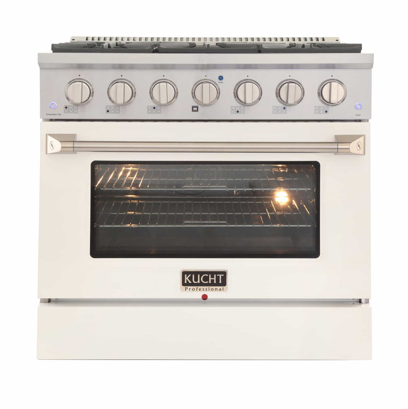 Kucht 36-Inch Pro-Style Dual Fuel Range in Stainless Steel with White Oven Door (KDF362-W)