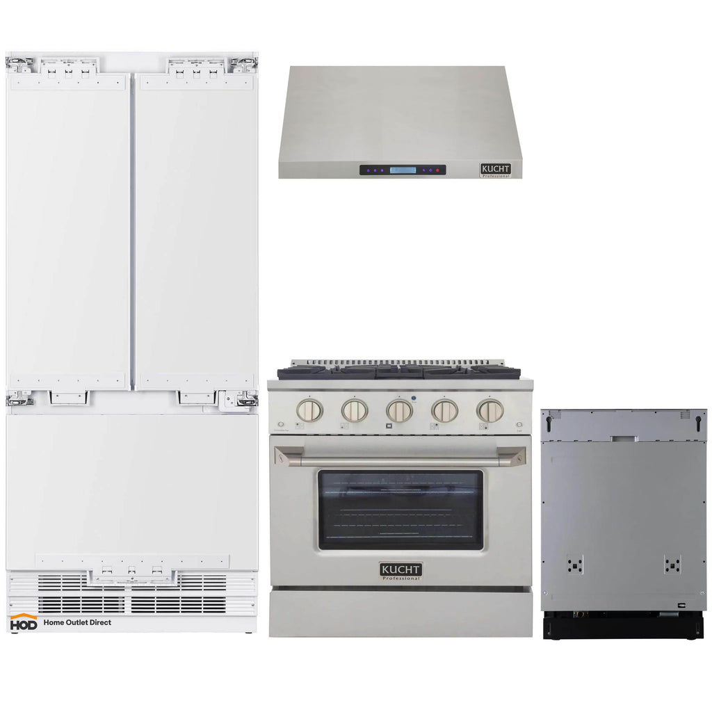 Kucht 4-Piece Appliance Package - 30-Inch Dual Fuel Range, 36-Inch Panel Ready Refrigerator, Under Cabinet Hood, & Panel Ready Dishwasher