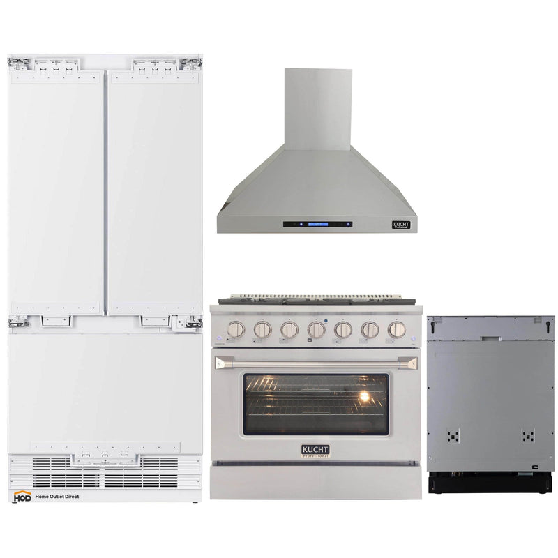 Kucht 4-Piece Appliance Package - 36-Inch Gas Range, 36-Inch Panel Ready Refrigerator, Wall Mount Hood, & Panel Ready Dishwasher