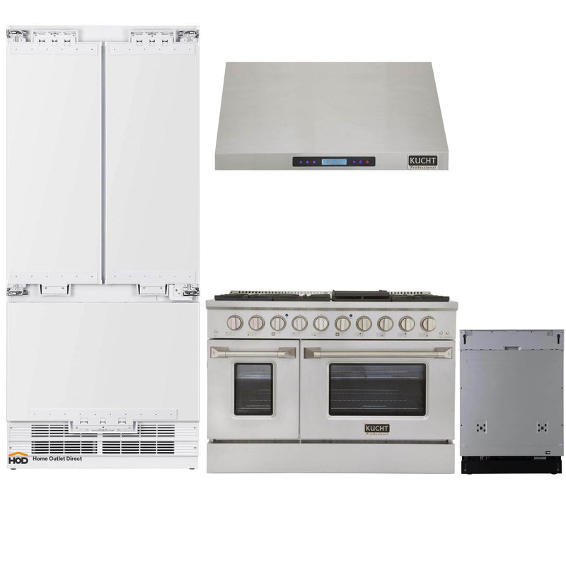 Kucht 4-Piece Appliance Package - 48" Dual Fuel Range, 36" Panel Ready Refrigerator, Under Cabinet Hood, & Panel Ready Dishwasher