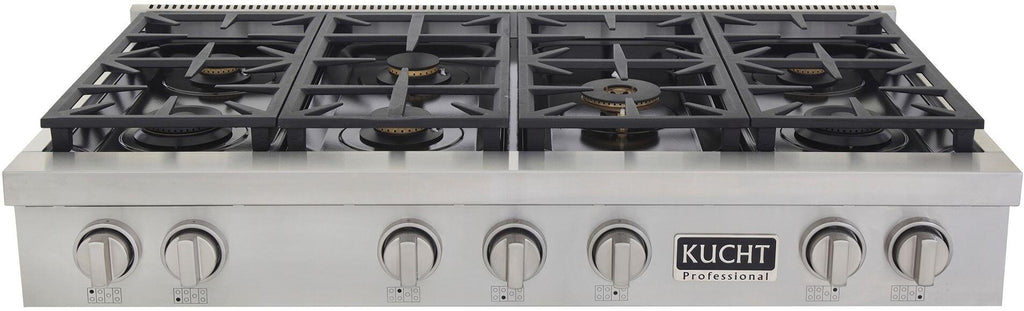 Kucht 48-Inch 6 Burner Gas Rangetop in Stainless Steel with Silver Accents (KFX489T-S)