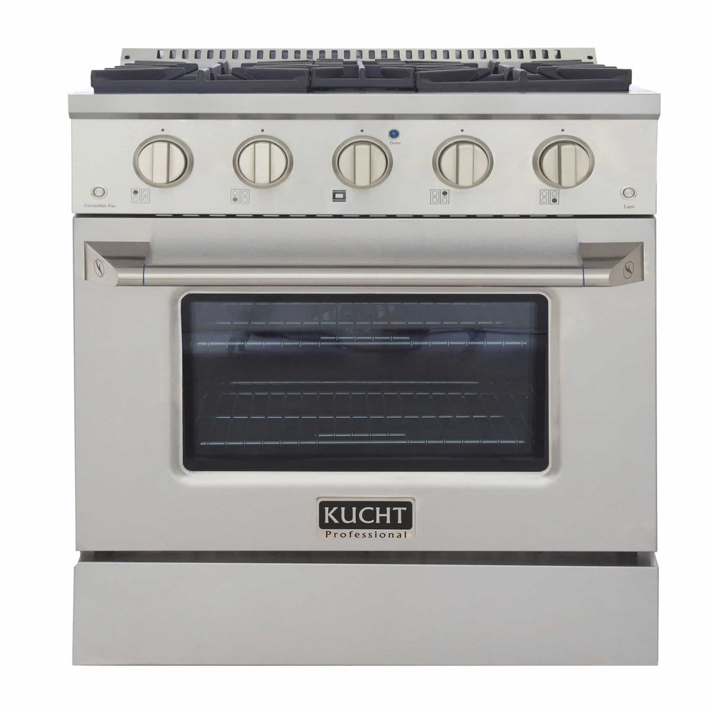 Kucht 5-Piece Appliance Package - 30-Inch Dual Fuel Range, 36-Inch Panel Ready Refrigerator, Under Cabinet Hood, Panel Ready Dishwasher, & Microwave Oven