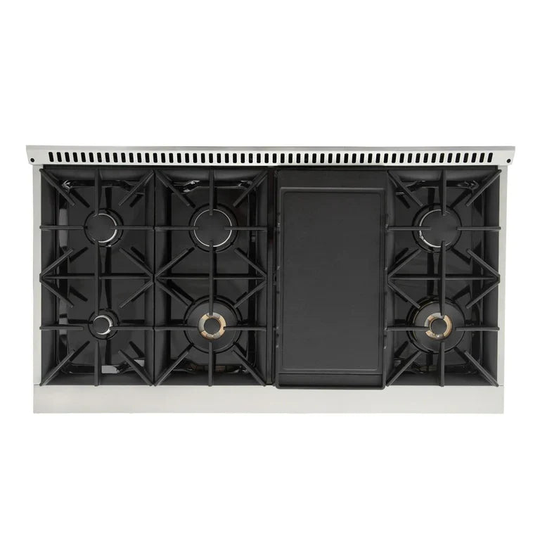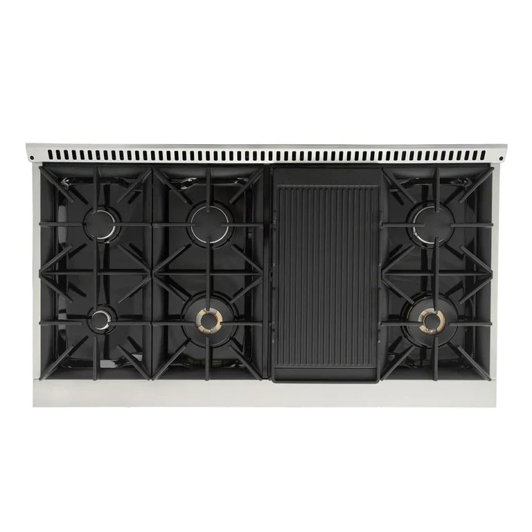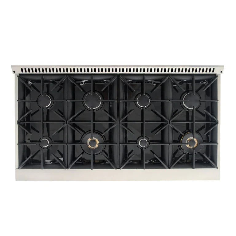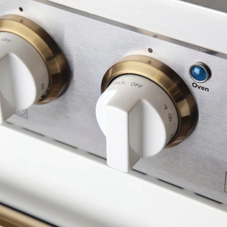Kucht Signature 48 In. 6.7 cu ft. Natural Gas/Propane Gas Range with White/Black Door and Gold/Rose Accents - KNG481-W-K