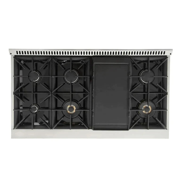Kucht Signature 48-Inch Gas Range with Convection Oven in White with White Knobs & Gold Handle (KNG481-W-GOLD)
