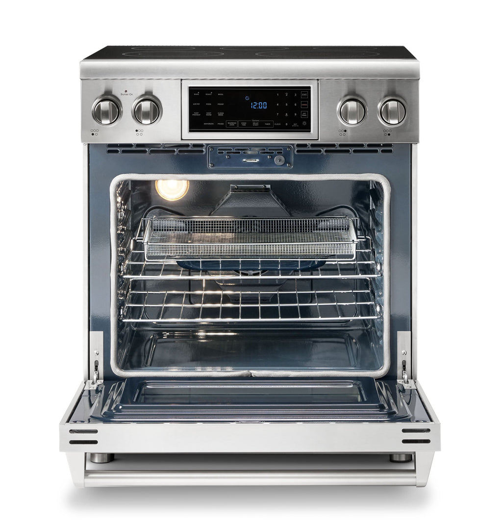 Thor Kitchen 2-Piece Appliance Package - 30-Inch Electric Range with Tilt Panel and Wall Mounted Range Hood in Stainless Steel