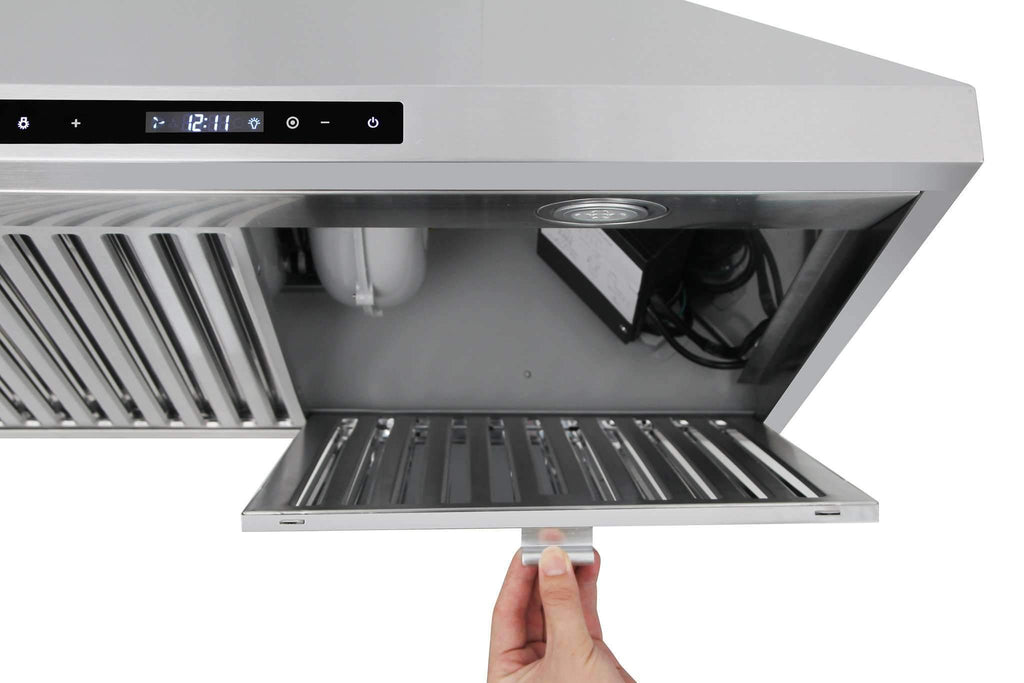 Thor Kitchen 5-Piece Appliance Package - 36-Inch Gas Range, Refrigerator with Water Dispenser, Wall Mount Hood, Dishwasher, & Wine Cooler in Stainless Steel