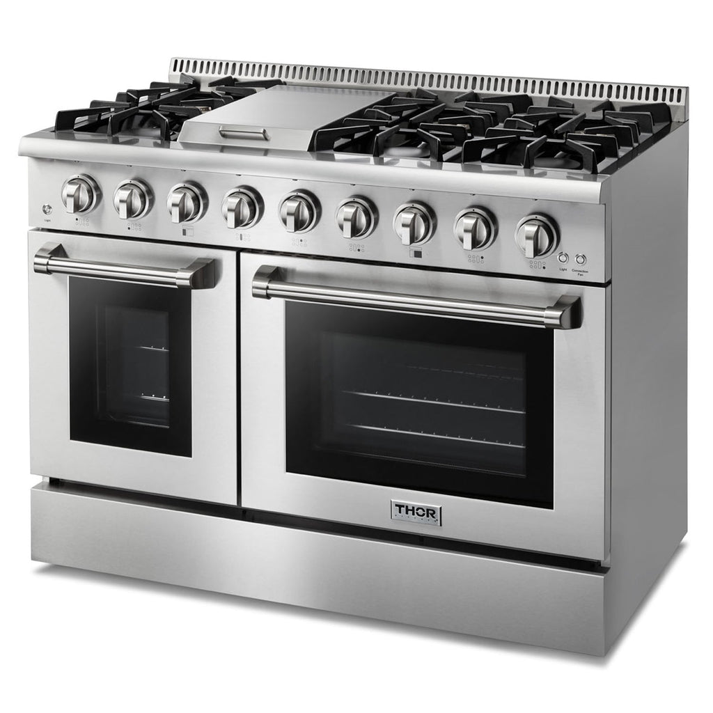 Thor Kitchen 6-Piece Pro Appliance Package - 48-Inch Gas Range, Refrigerator with Water Dispenser, Dishwasher, Under Cabinet 11-Inch Tall Hood, Microwave Drawer, & Wine Cooler in Stainless Steel