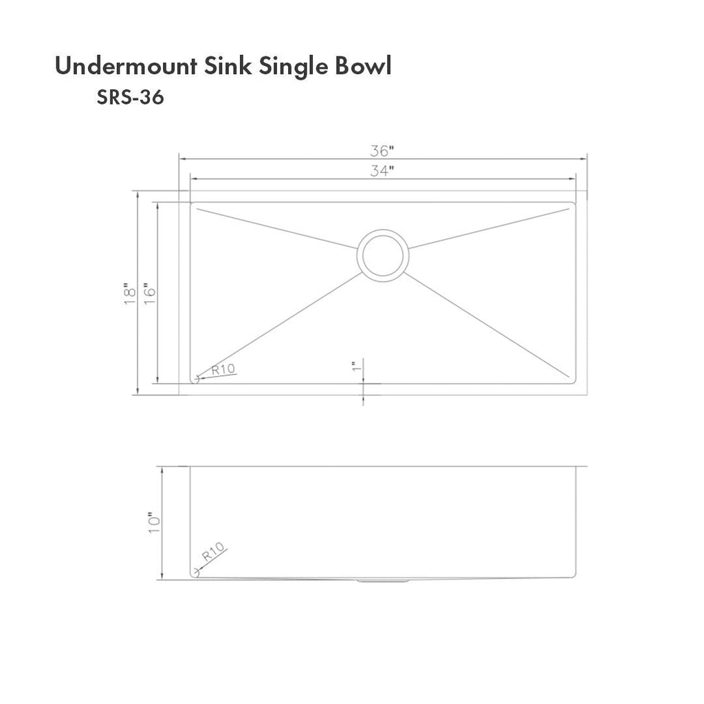 ZLINE 36" Meribel Undermount Single Bowl Kitchen Sink with Bottom Grid - SRS-36