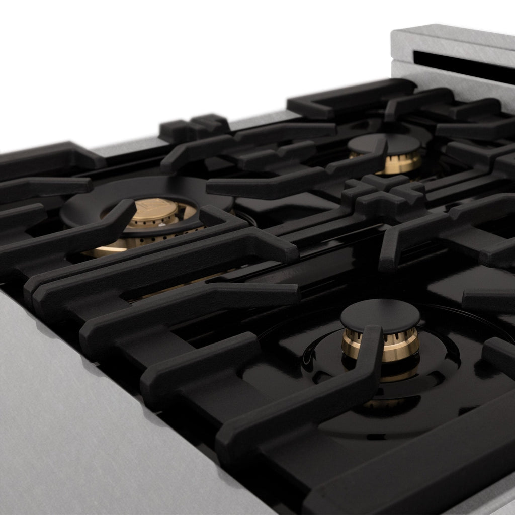 Experience Attainable Luxury with the ZLINE Autograph Edition Dual Fuel Range in Dura Snow stainless steel. Inspired by the elegance and snow-capped mountains of our home in Lake Tahoe, the Autograph Edition provides an elevated luxury experience. This revolutionary finish resembles the classic look of stainless steel, but provides one-of-a-kind durable features such as its fingerprint resistant finish and the ability to effortlessly diminish scratches created from everyday wear and tear.