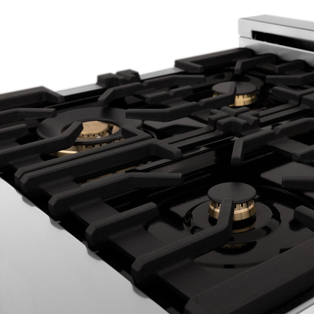 This ZLINE Autograph Edition Dual Fuel Range is inspired by the elegance of our home in Lake Tahoe. The Autograph Edition provides an elevated luxury experience, with each product meticulously designed to reflect the unique beauty found in the Lake Tahoe landscapes. Combining the professional power and functionality of a ZLINE Range with stunning Champagne Bronze accents, this sophisticated line of professional ranges brings a new meaning of elegance.