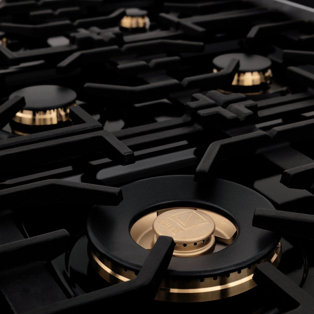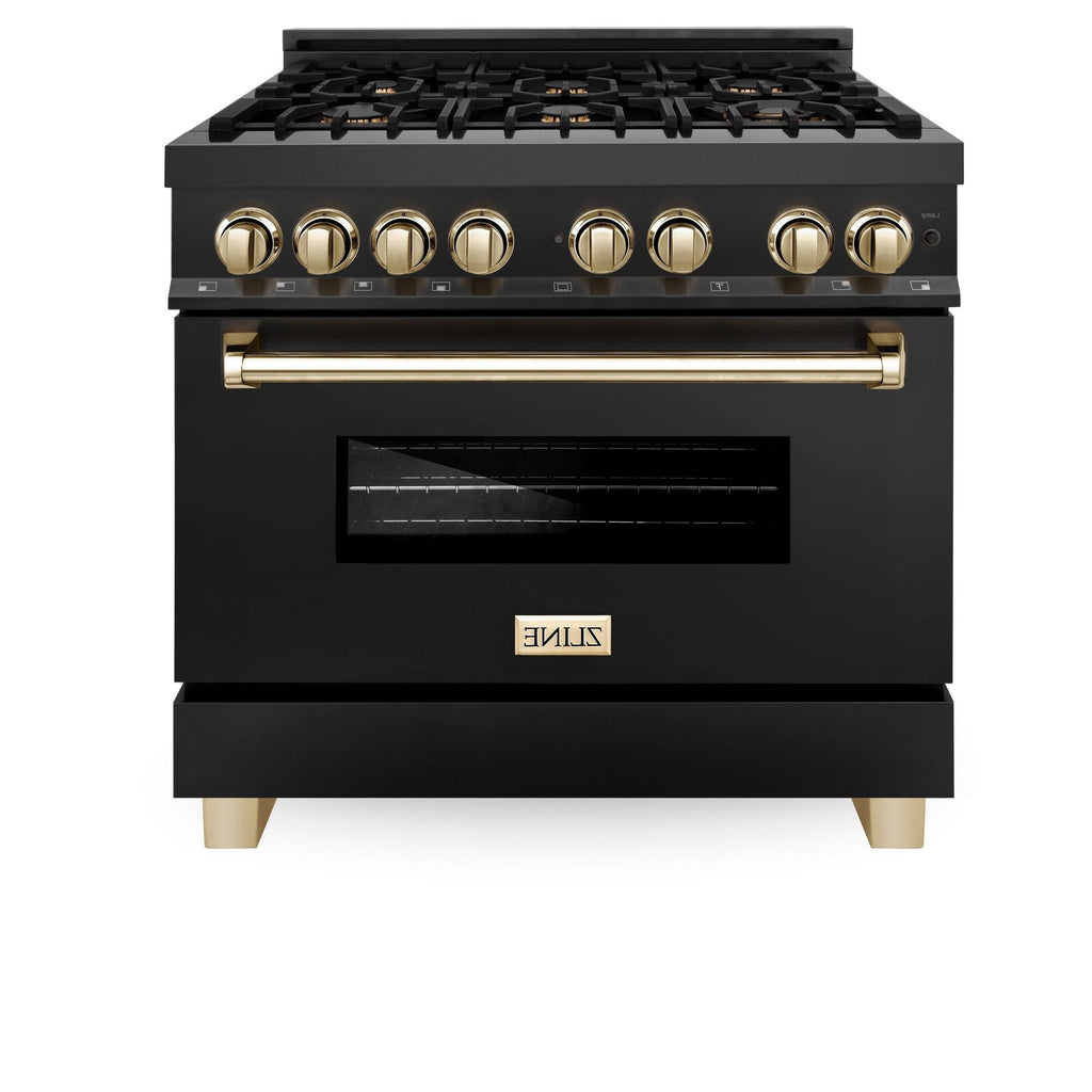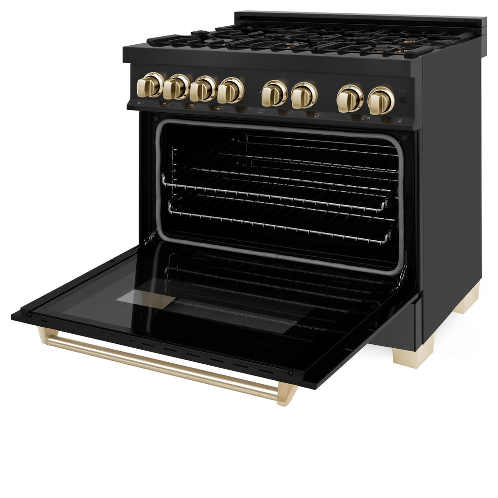 ZLINE Autograph Edition 36" 4.6 cu. ft. Dual Fuel Range with Gas Stove and Electric Oven in Black Stainless Steel with Accents - RABZ-36
