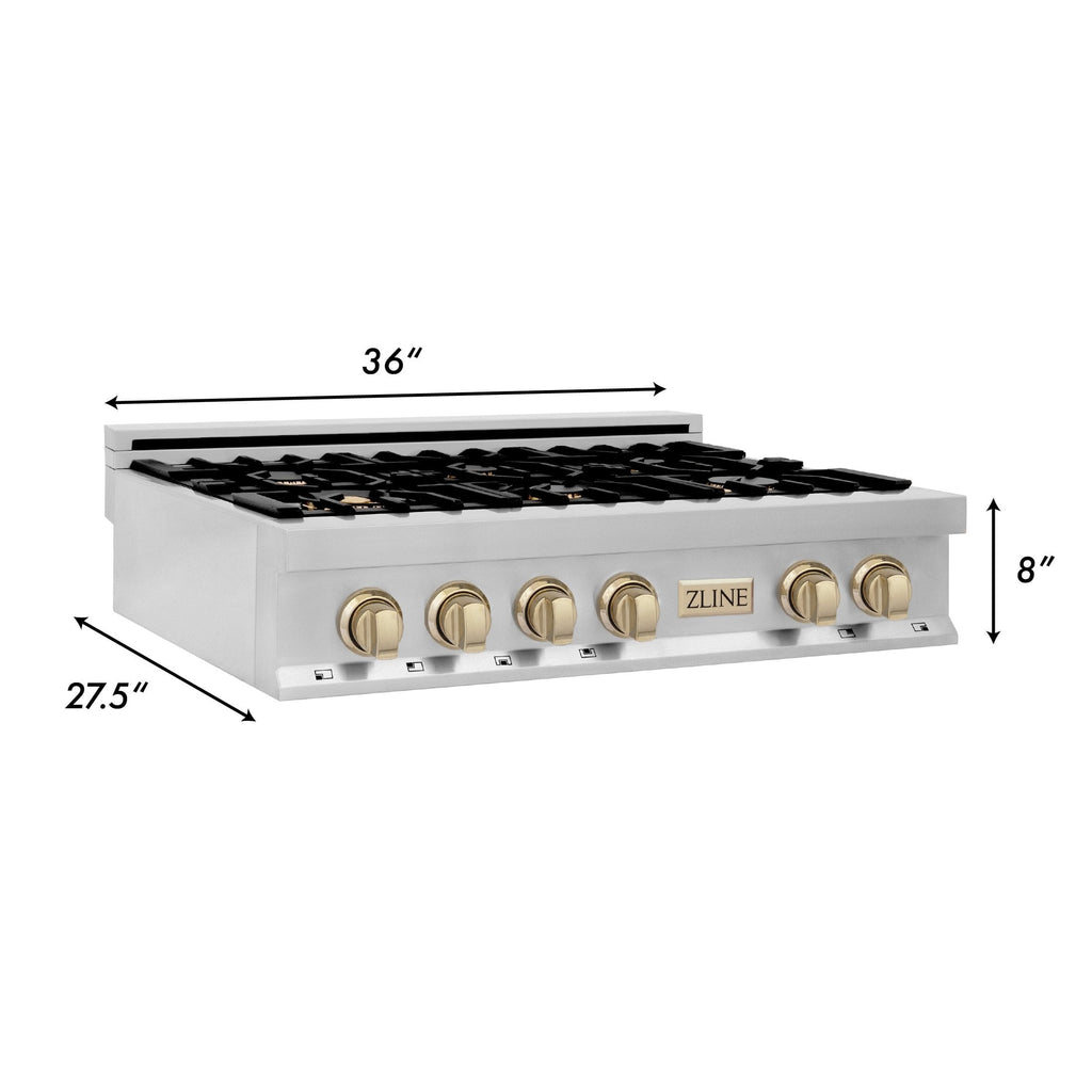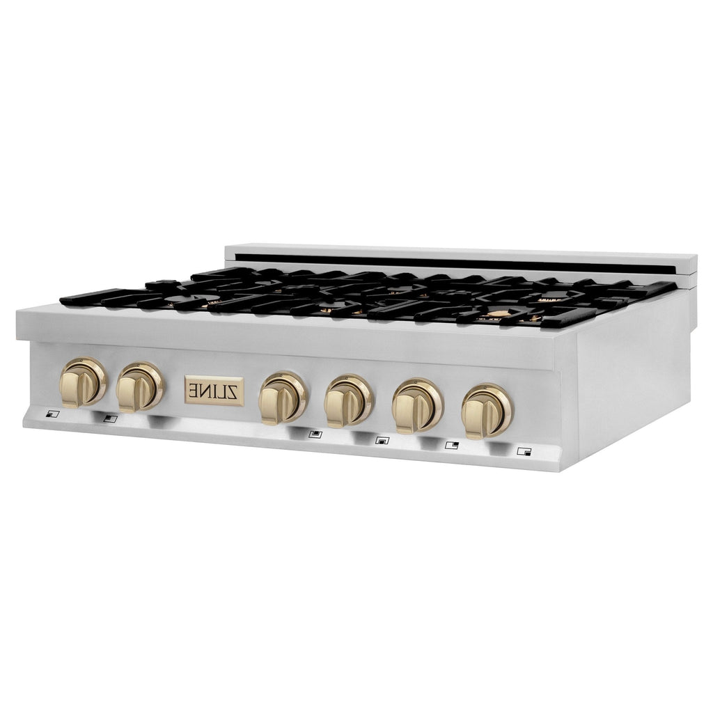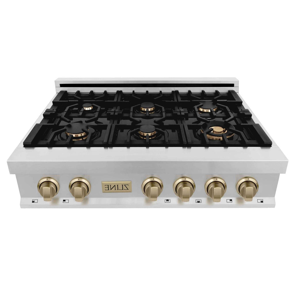 ZLINE Autograph Edition 36" Porcelain Rangetop with 6 Gas Burners in Stainless Steel with Accents - RTZ-36
