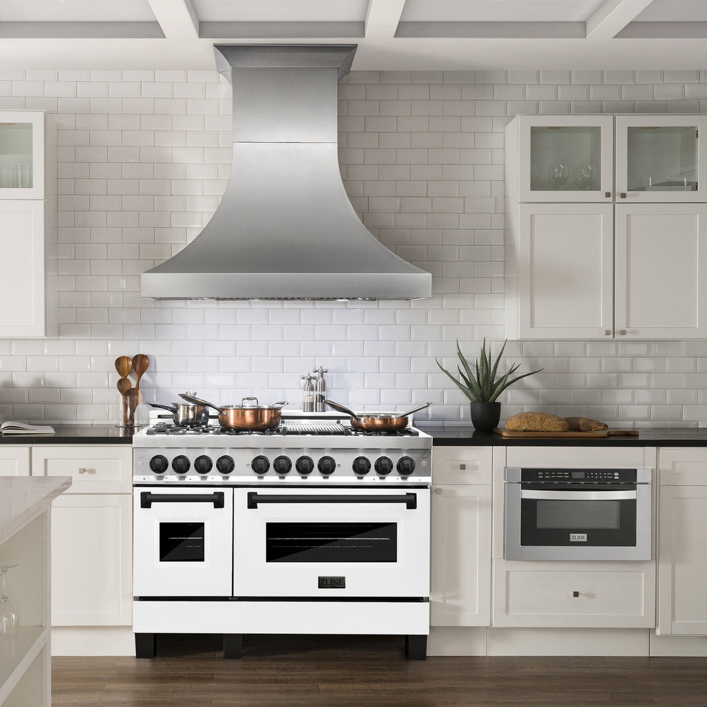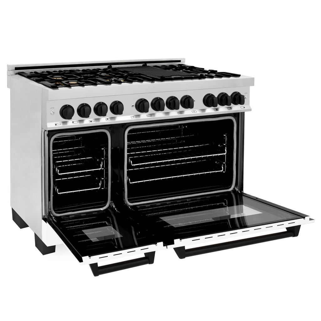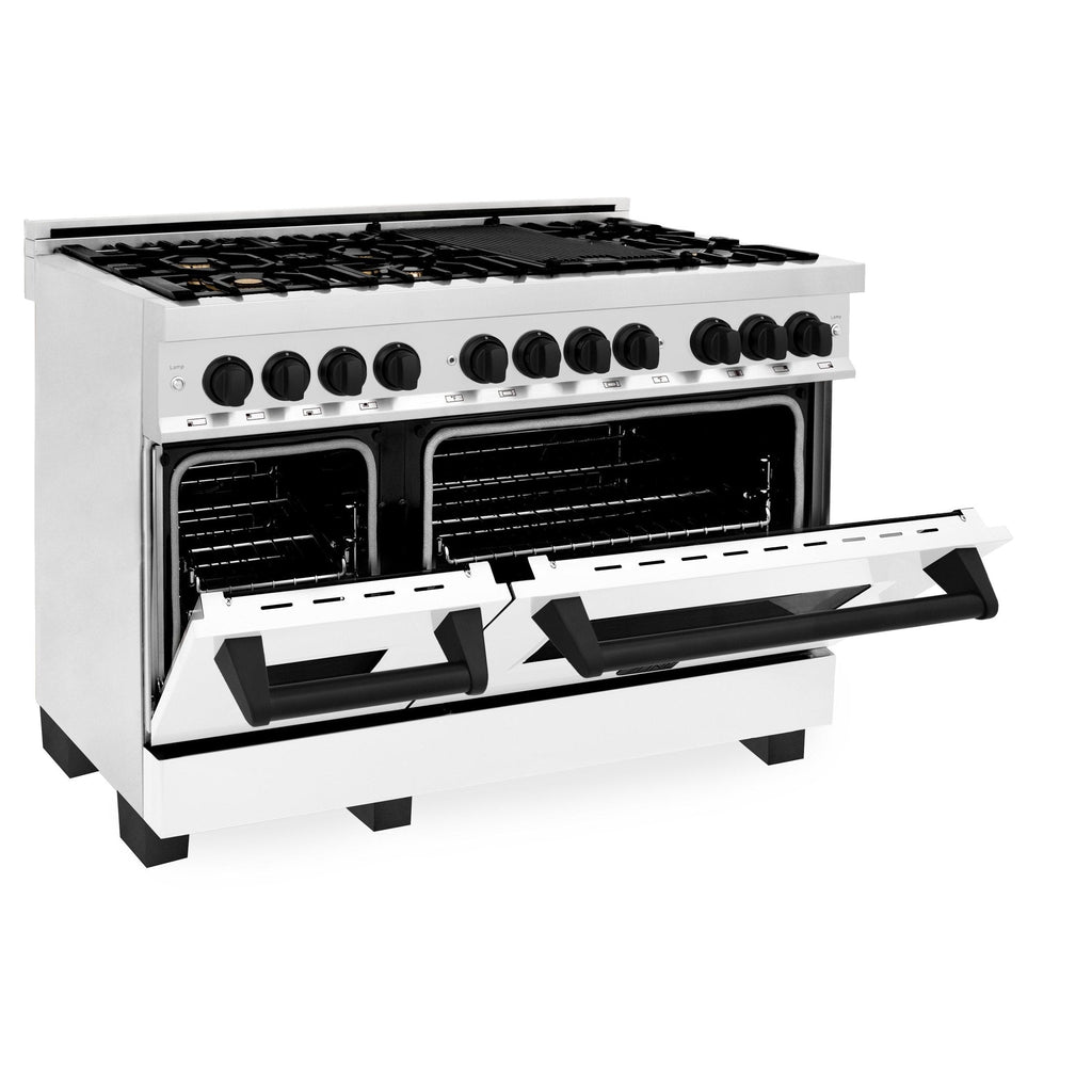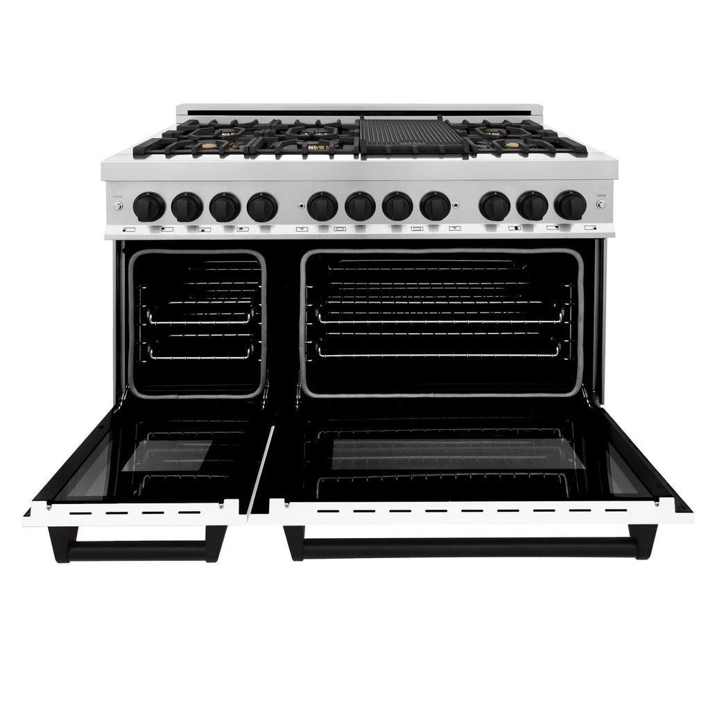 ZLINE Autograph Edition 48" 6.0 cu. ft. Dual Fuel Range with Gas Stove and Electric Oven in Stainless Steel with White Matte Door and Accents - RAZ-WM-48